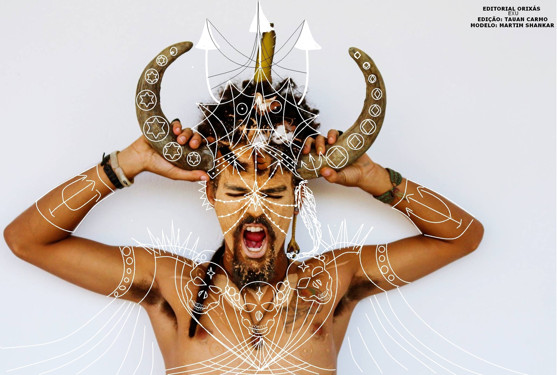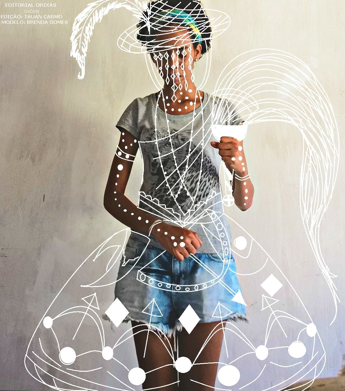 As fotografias são usadas como base para desenhos feitos por computador, transformando os modelos das divindades. "Desenho desde pequeno nos cadernos, nas mesas e no paint (rs)". Fotógrafo por hobby, ele começou a desenhar em cima das fotos para unir esses duas paixões da vida. "O editorial orixás foi sendo criado de foto em foto. Fui desenhando em cima das fotos de amigos e mandando pra eles,todos amaram!", conta.